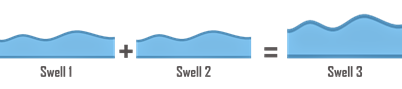 As ondas de gravidade apresentam cristas pontiagudas de elevada altitude que, na aproximação à costa, e com diminuição da velocidade do vento, podem viajar mais depressa que este elemento. Quando isto acontece, o declive da onda diminui, e elas transformam-se em ondas com longas cristas designadas como “swell” que pode deslocar-se ao longo de grandes distâncias sem perda significativa de energia, pelo que é possível que o swell de diversas tempestades possam colidir e interferir uns com os outros, levando à soma das suas forças. Assim, e por exemplo, o swell resultante de duas tempestades distantes, traduz-se num só, sendo que a força corresponde à soma algébrica dos dois.